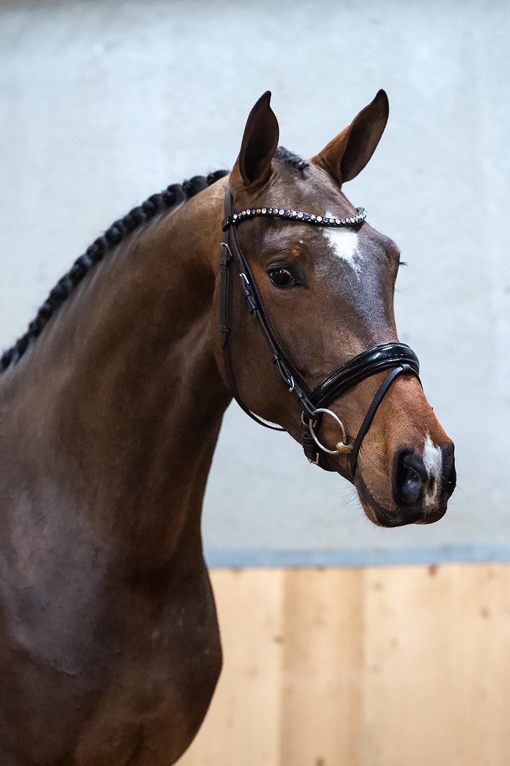 We were very impressed with this modern and leggy mare. She has a fabulous temperament and three really cool paces. There is a lightness and easiness to the way she moves which we really liked. Her walk is also very schwungy, big and through her body. Although tall, this horse is not ‘huge’, she is really beautifully put together and will absolutely make a very impressive dressage horse in the future. Fontaine is renouwed for producing well balanced and well tempered sports horses, so we believe that this mare will be just that. Vetted and healthy.