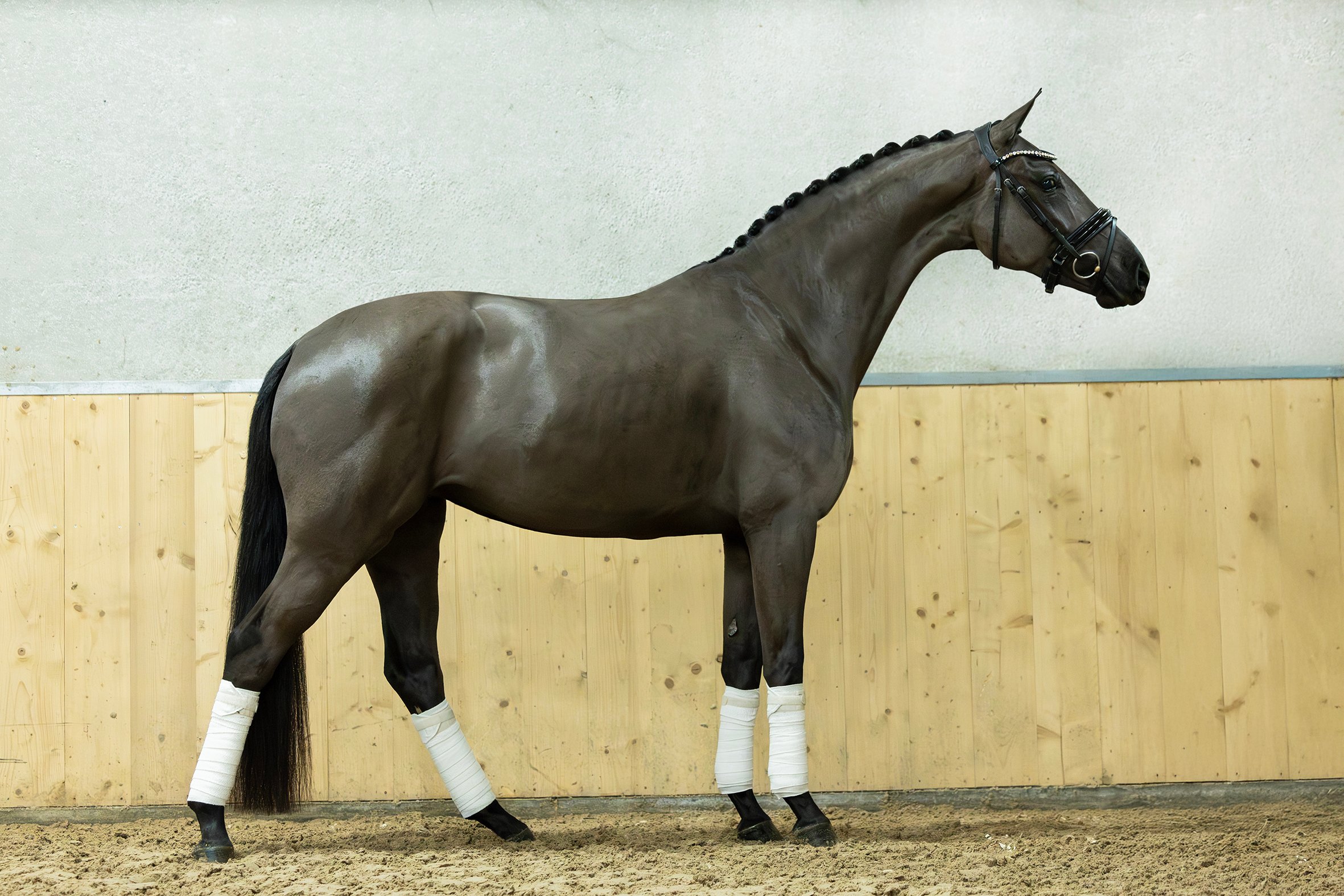 Yes, this is such a lovely mare with a beautiful type and correct build. She moves very well and shows three super quality gaits, always moving through her body with great balance and ease. Her way of going is natural, and elegant. We are sure that she is a very nice and promising horse to develop further for the future.