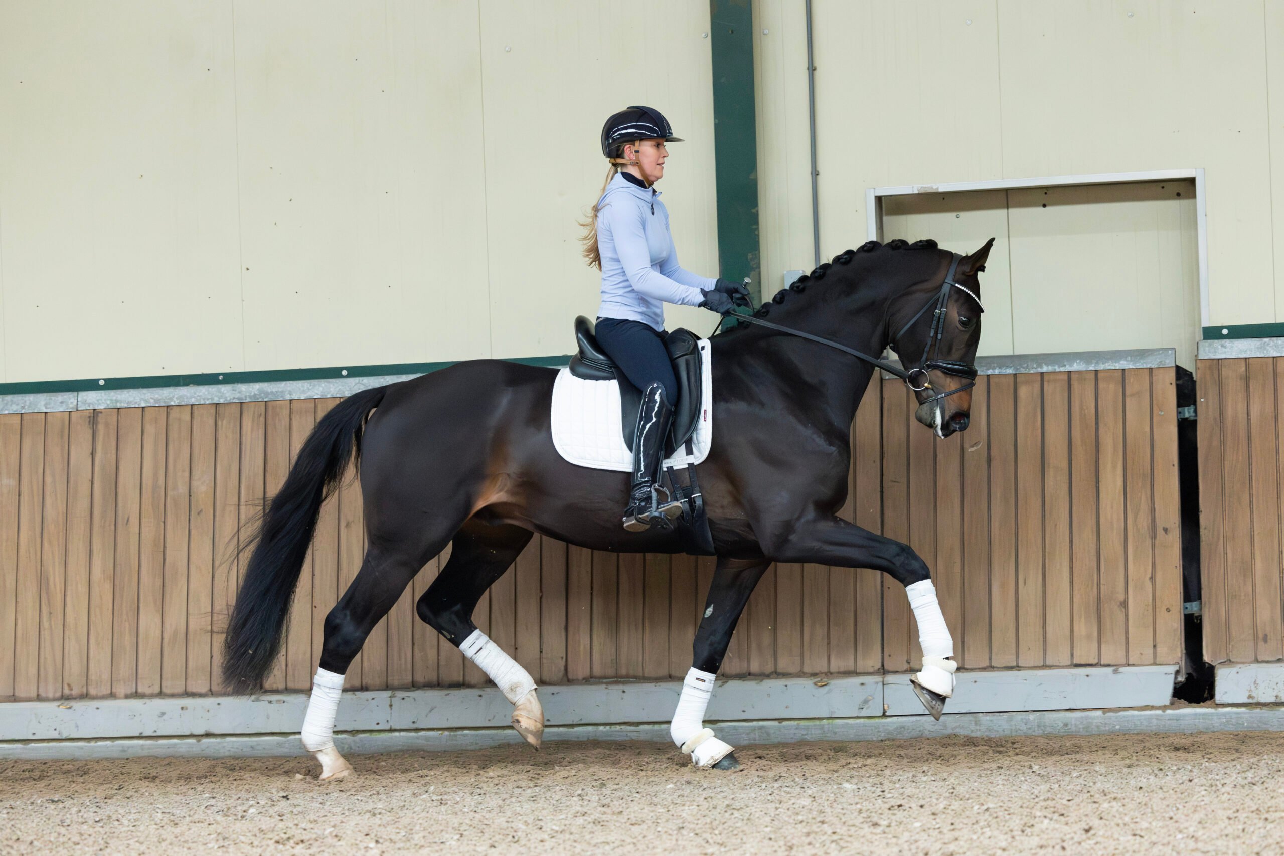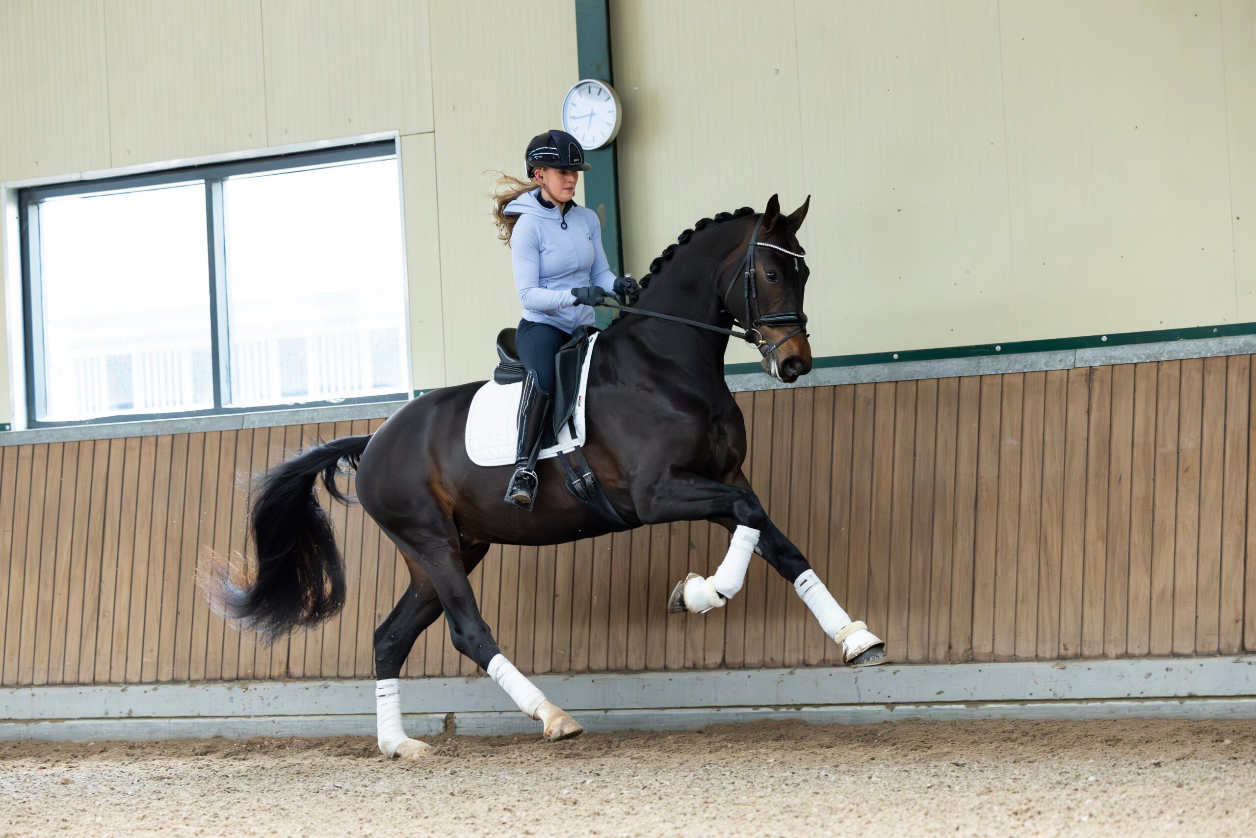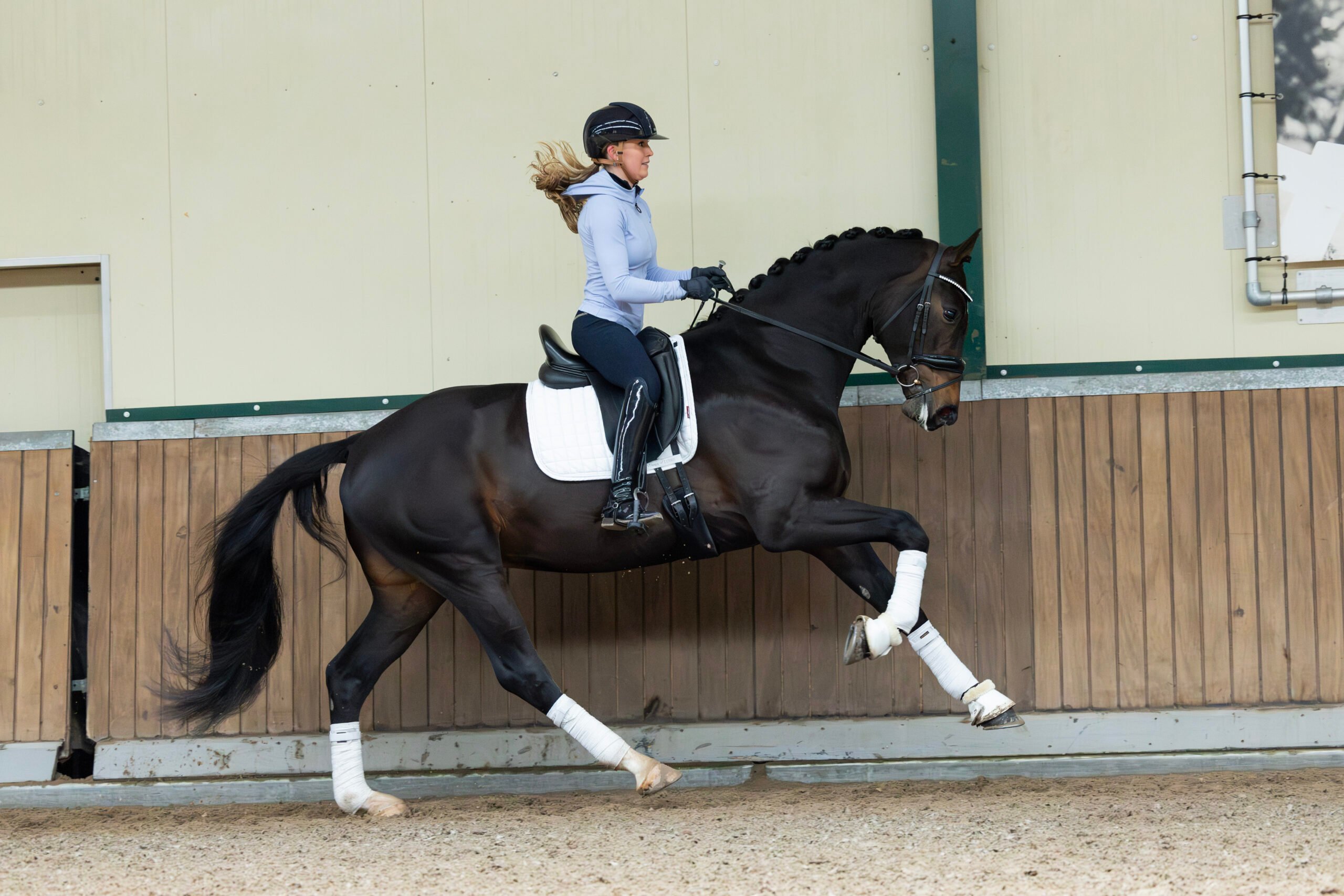 We are confident this horse is destined for greatness! His canter is out of this world – huge, powerful, and uphill. His trot already shows impressive engagement from behind and the walk is super correct. He is an absolute pleasure to work with thanks to his willing and positive attitude. With the right development and training, this talented young horse is sure to become an exceptional partner for the future.