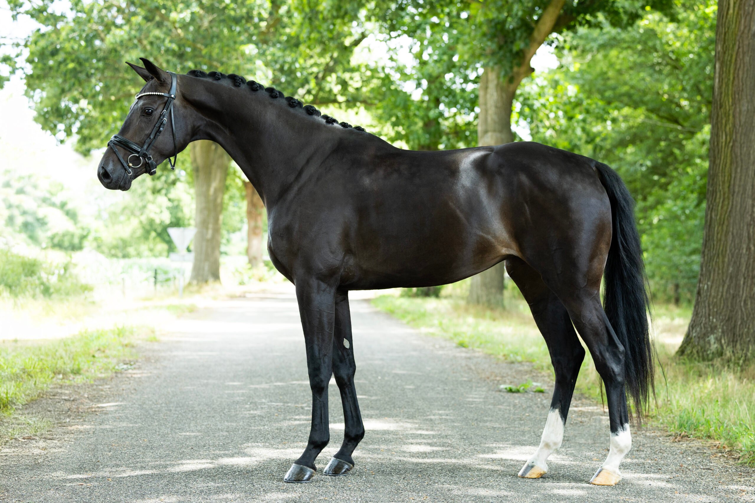 This sweet and willing mare is working very nicely under the saddle and shows great enthusiasm in everything she does. We really like her, as she creates a beautiful picture in her work with a naturally elegant frame. She offers three good paces, with a particularly powerful and expressive trot. She is forward-thinking and forward-going, but always in a good, sweet, and positive way. With her lovely character and affectionate nature, she is a pleasure to have around and truly enjoys attention. A super nice girl with a positive attitude — ready to continue her development and become someone’s special partner for the future.