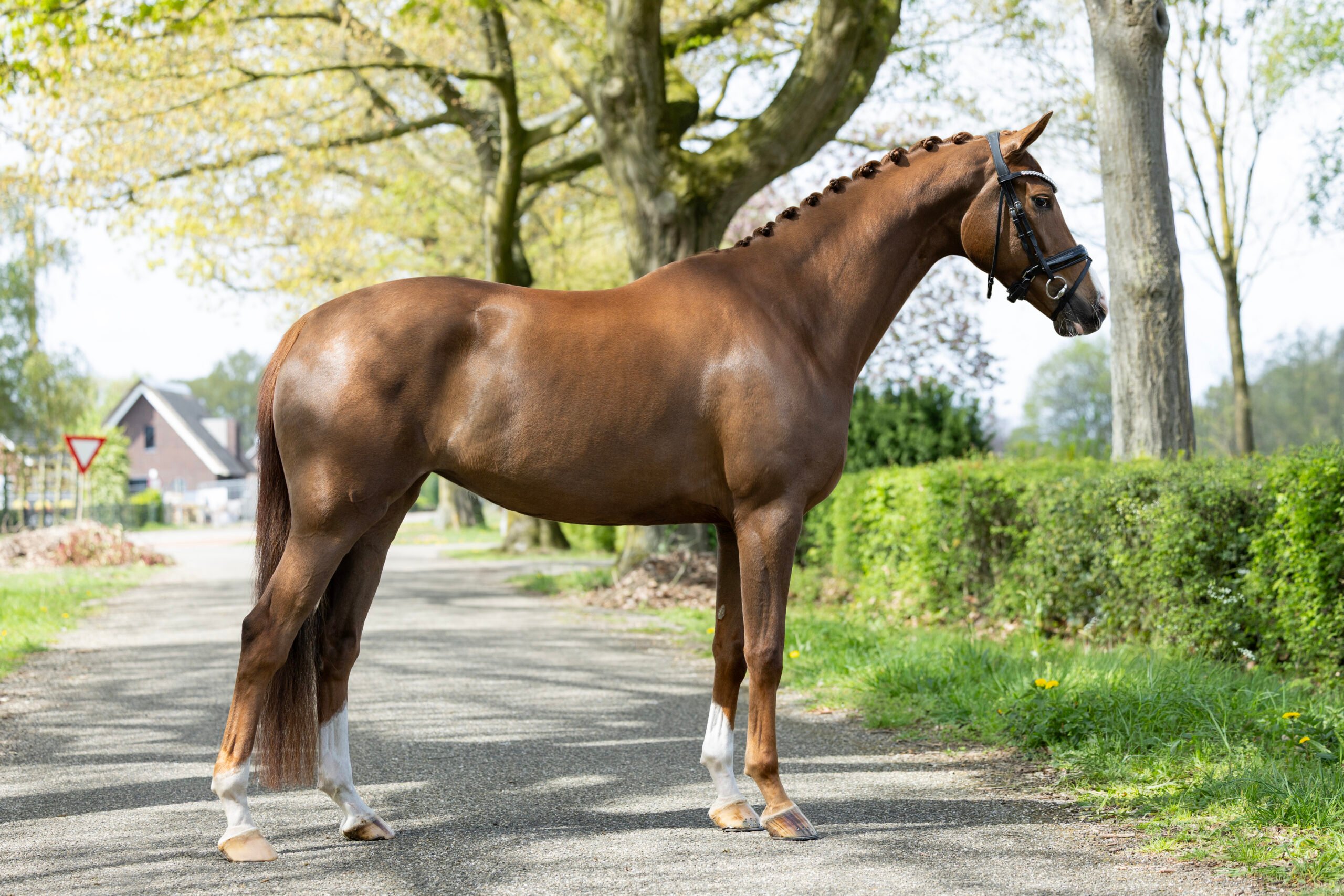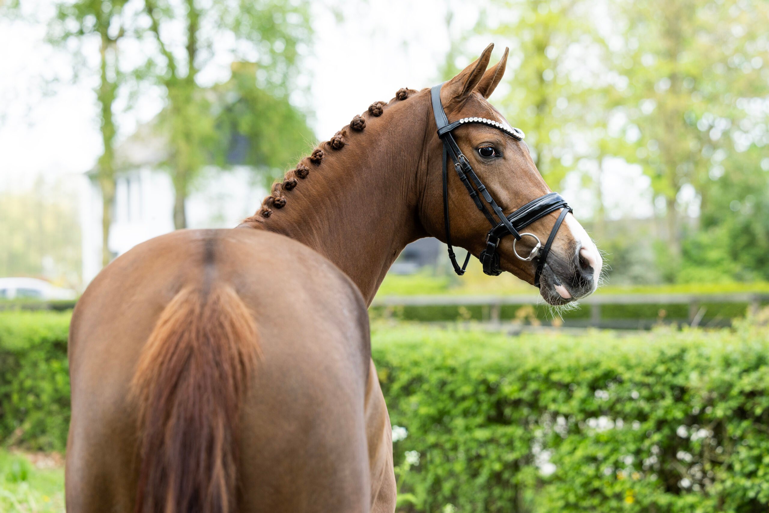 This mare is a super elegant type with a cute and pretty face. She has an adorable aura about her and catches your eye. In movement, she shows suppleness, ease and natural balance – flowing beautifully through her body. Her character is sweet, kind and willing, making her a joy to work with. We truly believe this lovely girl has all the ingredients to become a fantastic horse for the future.