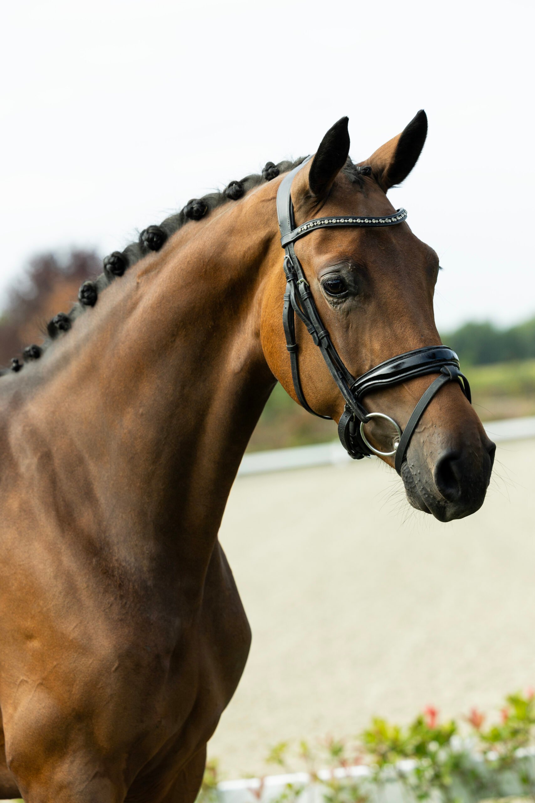 We have a super cool and powerful mare here, who became Reserve Champion of the Groningen region this summer. She moves with strength, balance and a particularly good walk. She is working well on the lunge and shows plenty of quality and potential for the future. She is in foal for next year by Vino Tinto, a young Viva Gold stallion.