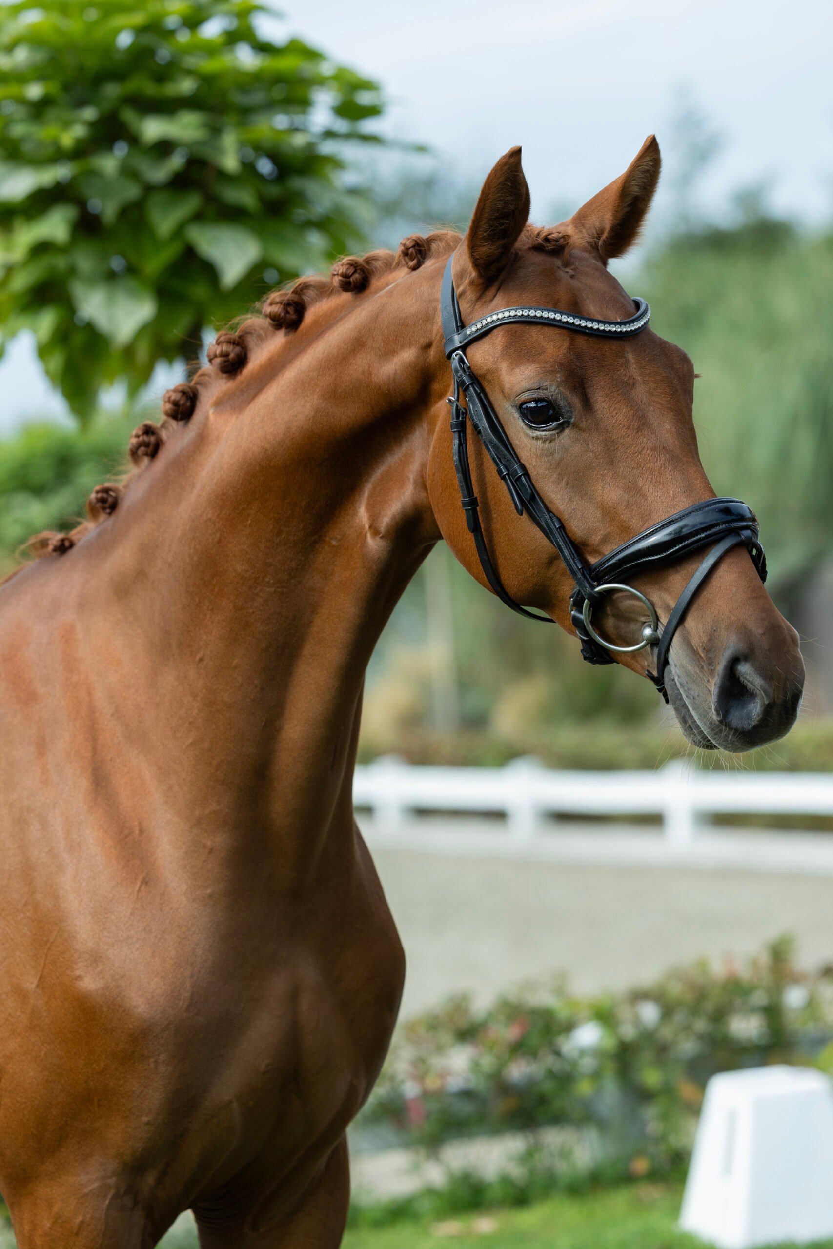 This lovely mare is a super cool horse. She moves light-footed and with expression, making her a pleasure to watch. Although she is still very green – this was only her fifth time ridden in the big arena. She showed herself super sweet, willing and good-going. She has a naturally forward energy and mindset, always thinking and working with her rider, which makes us very confident she will develop into a fantastic horse for the future.