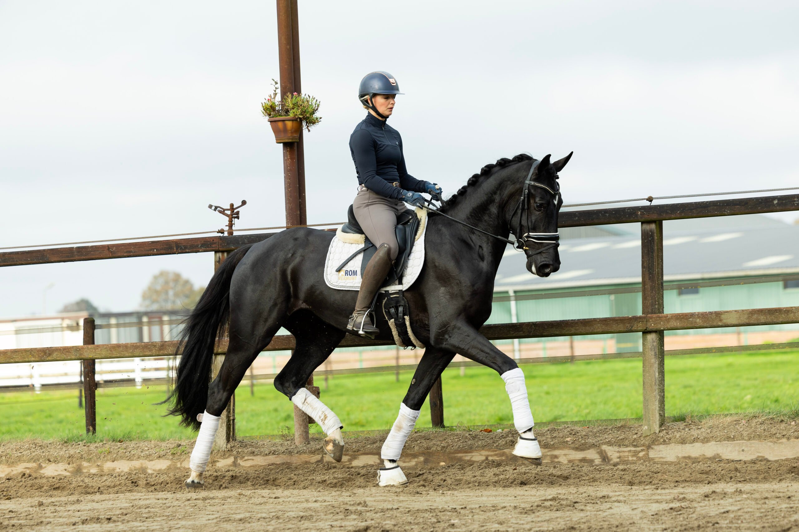 This cool mare shows plenty of activity and power from behind, with a strong hind leg that gives her movement great expression. She hasn’t been under saddle for very long, but she already impresses us with her bravery, sweet nature and willingness to work. With a bit more time and strength, we are sure this lovely mare will develop into a fantastic horse for the future – one with both talent and the right mindset.