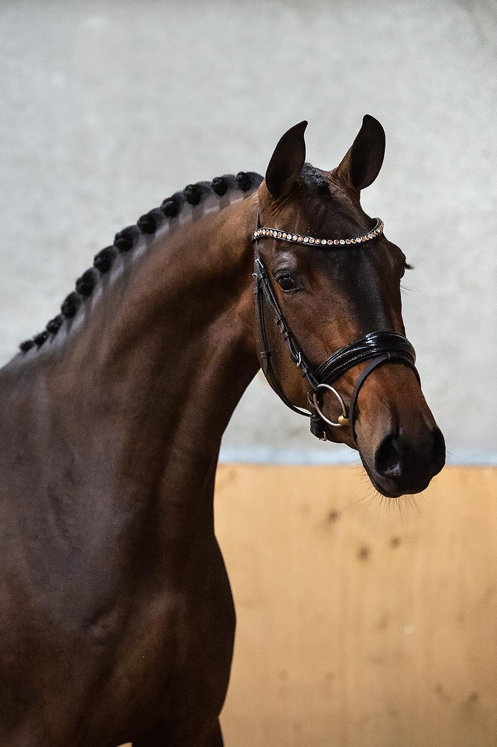 This very well bred mare moves with athleticism and power around the arena. She is a true ‘pocket rocket’. Saying that, she is also very sweet and shows willingness to learn and to adapt to her new situation. She has just come into the stable from herd life and is inquisitive and cute in around the stable. She has really good mechanics and three solid paces, so we think this is going to be a great sports horse! Vetted and healthy