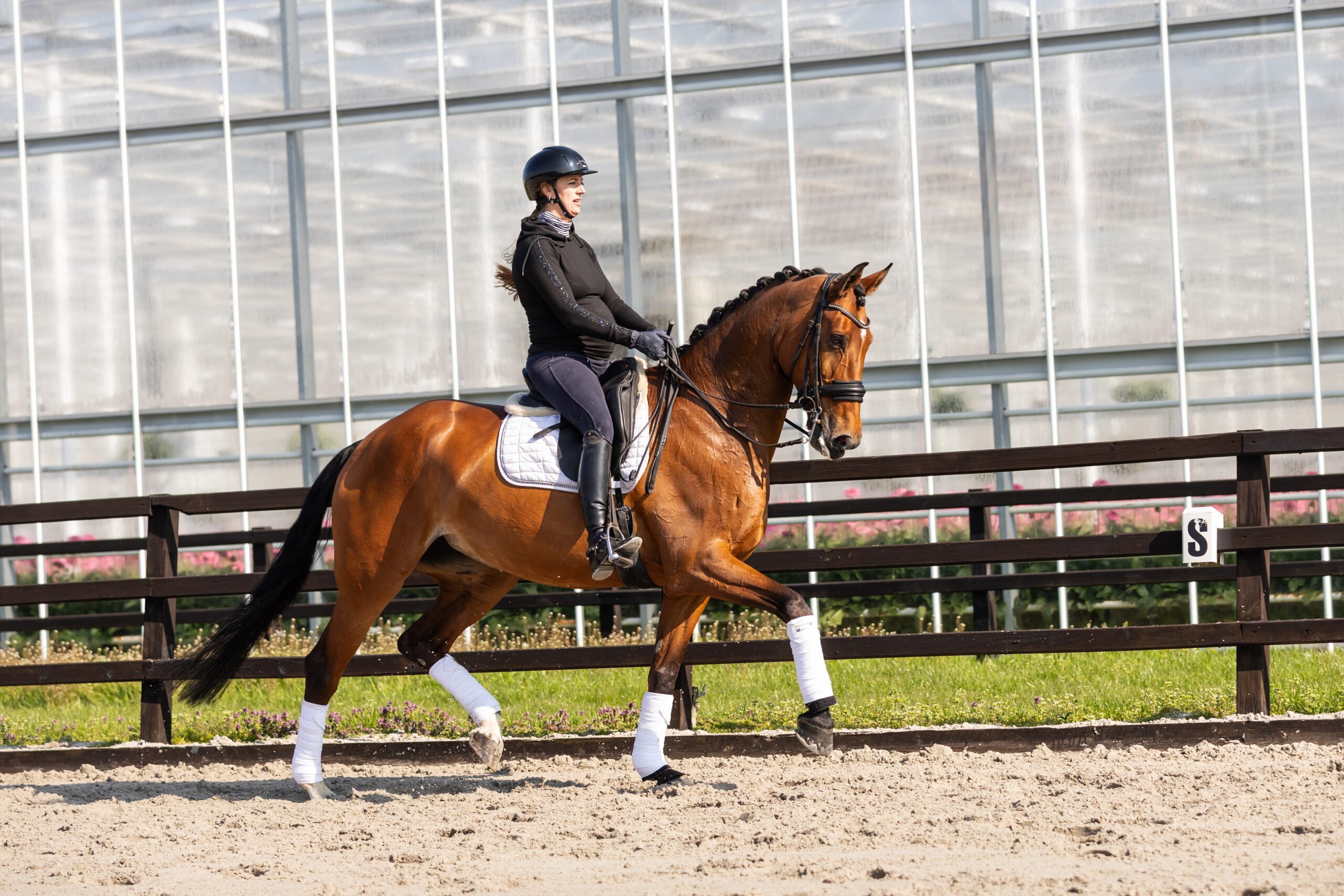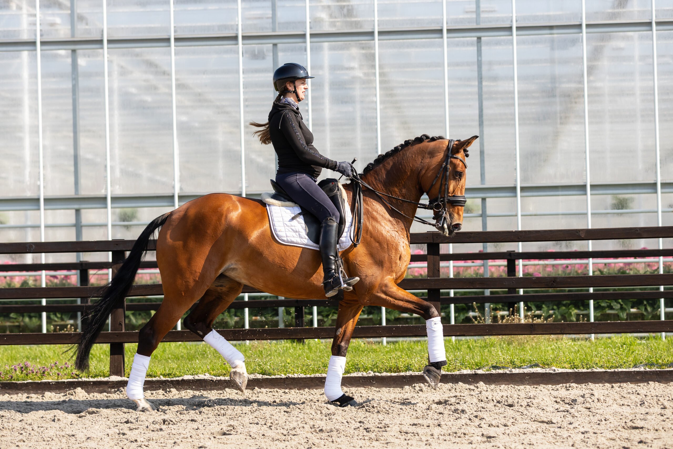 We truly love this mare, and she is a joy to watch in her work. She moves with naturel ease, looseness and quality, making everything look effortless under saddle. Her willingness to work and positive attitude stand out—she genuinely enjoys her job and always tries her best for her rider. She is a sensitive mare who thrives with a rider that gives her confidence and reassurance—someone who says, we can do this together. In the right hands, she is an incredibly rewarding partner. In and around the stable, she is an absolute sweetheart. She loves attention, cuddles, and is a pleasure to have as part of the daily routine. Her rider has had her since she was a foal, which makes this a very difficult decision. Due to the rider’s pregnancy, it has been decided that this special mare deserves a new home where she will be just as loved and appreciated.